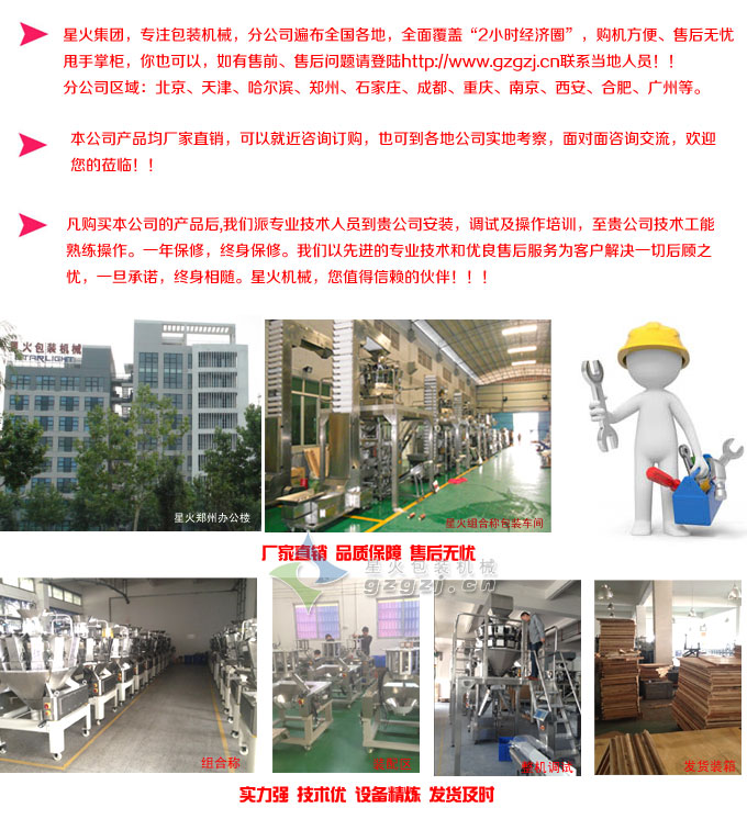 該全自動(dòng)薯片薯?xiàng)l包裝機(jī)為星火研制的多頭組合稱包裝機(jī),專業(yè)包裝薯片薯?xiàng)l、貓耳朵等膨化食品而研制,故又稱膨化食品自動(dòng)包裝機(jī)械。整機(jī)自動(dòng)化程度高,全自動(dòng)完成送料,計(jì)量,充填制袋,打印日期,產(chǎn)品輸出全部生產(chǎn)過(guò)程,十頭電腦組合秤,計(jì)量精度高、效率快,不易碎料,包裝形式多樣:背封、插角、連袋、沖孔等。 1.4230全自動(dòng)包裝機(jī) 2.十頭電腦組合秤 3.Z型物料輸送機(jī) 4.振動(dòng)送料機(jī) 5.支撐平臺(tái) 6.成品輸送機(jī) ![]() 1、采用雙伺服電機(jī)控制,拉膜更準(zhǔn)確,速度更快。 3、橫、縱封溫度獨(dú)立控制,能良好的適用各種復(fù)合膜、PE膜等包裝材料。 4、精度高、噪音小。 產(chǎn)品直達(dá)車