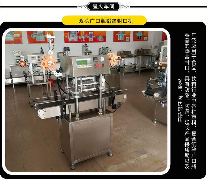 廣泛應(yīng)用于食品、飲料行業(yè)中各種塑料、復(fù)合紙等廣口瓶容器的熱合封口,具有防潮、防漏、延長產(chǎn)品保質(zhì)期以及防盜、防偽的作用