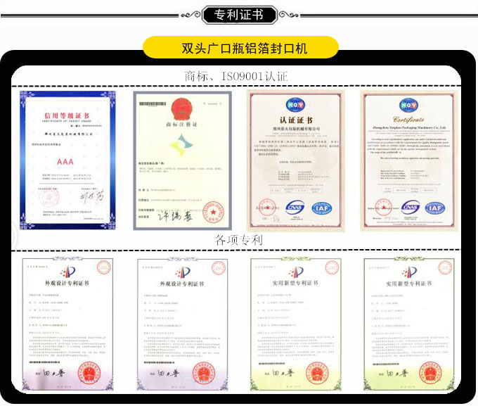 全自動(dòng)雙頭廣口瓶封口機(jī)集機(jī)、電、氣于一體,設(shè)計(jì)科學(xué)合理;該機(jī)主要由機(jī)架,供膜裝置,收膜裝置,熱封切頭,瓶子自動(dòng)定位裝置,電、氣控制箱及輸送系統(tǒng)組成。具有自動(dòng)進(jìn)瓶出瓶、自動(dòng)恒溫、自動(dòng)供膜切膜和收膜的功能;采用熱復(fù)合工作原理,封口膜的供、收膜全程由減速電機(jī)及齒輪付驅(qū)動(dòng),結(jié)構(gòu)簡單,運(yùn)行穩(wěn)定。